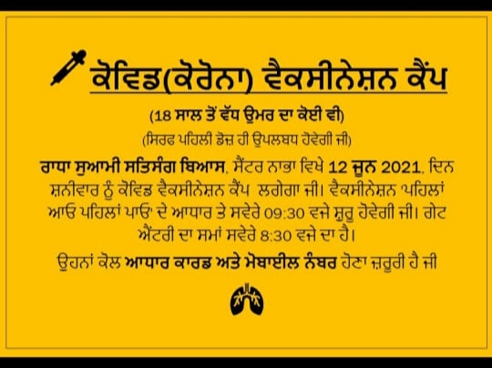 On Saturday 12th June at these places in Nabha there will be +18 Crona Vaccination