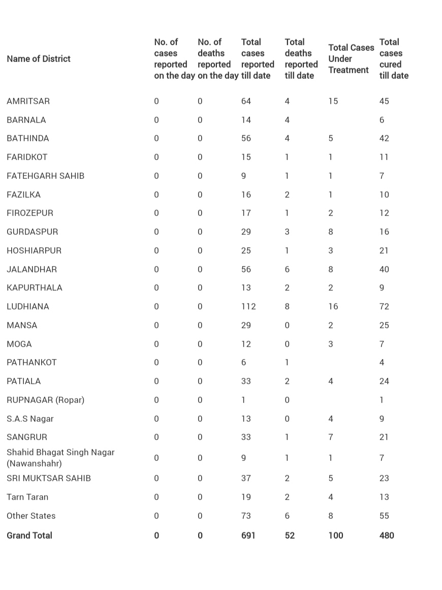 ਚੰਡੀਗੜ੍ਹ, 19 ਅਕਤੂਬਰ 2021 – ਪੰਜਾਬ ‘ਚ ਪਿਛਲੇ 24 ਘੰਟਿਆਂ ਦੌਰਾਨ ਕੋਰੋਨਾ ਕਾਰਨ 2 ਮੌਤ ਹੋਈ ਹੈ ਜਦੋਂ ਕਿ 18 ਨਵੇਂ ਕੇਸ ਆਏ ਸਾਹਮਣੇ ਹਨ ਜਿਸ ਕਾਰਨ ਐਕਟਿਵ ਮਰੀਜ਼ਾਂ ਦੀ ਗਿਣਤੀ 216 ਰਹਿ ਗਈ ਹੈ। ਜਦੋਂ ਕਿ ਸੂਬੇ ‘ਚ ਹੁਣ ਤੱਕ ਕੁੱਲ ਪਾਜ਼ੀਟਿਵ ਮਰੀਜ਼ਾਂ ਦੀ ਗਿਣਤੀ 602081 ਹੋ ਗਈ ਹੈ ਜਦੋਂ ਕਿ 585316 ਮਰੀਜ਼ ਠੀਕ ਹੋ ਕੇ ਘਰਾਂ ਨੂੰ ਪਰਤ ਚੁੱਕੇ ਹਨ ਪੜ੍ਹੋ ਪੂਰੀ ਰਿਪੋਰਟ…