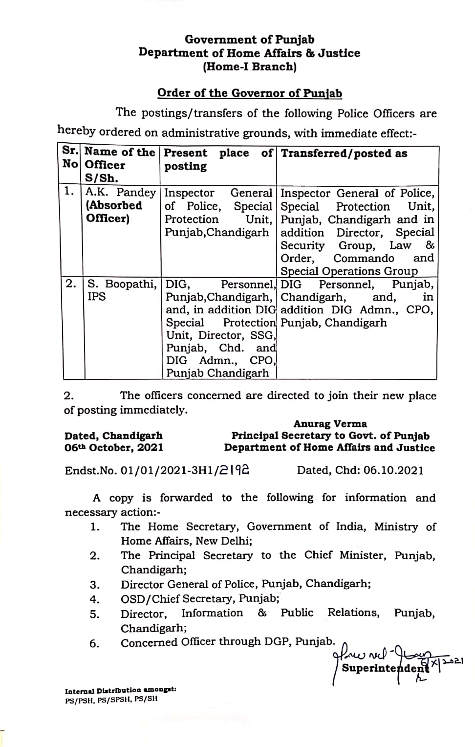 News PatialaThe Punjab Government has ordered the transfers and postings of two senior IPS officers with immediate effect.